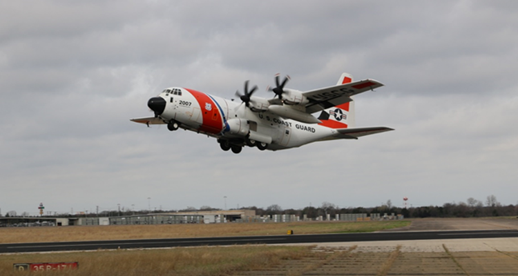 The Coast Guard’s newest Minotaur Mission System Suite-missionized HC-130J, CGNR 2007, departs Waco, Texas, March 8, 2019, after completing missionization integration work at L3 Technologies Inc. Integrated Systems Platform Integration Division. The HC-130J was flown to Coast Guard Air Station Elizabeth City, North Carolina, where it will be stationed.
