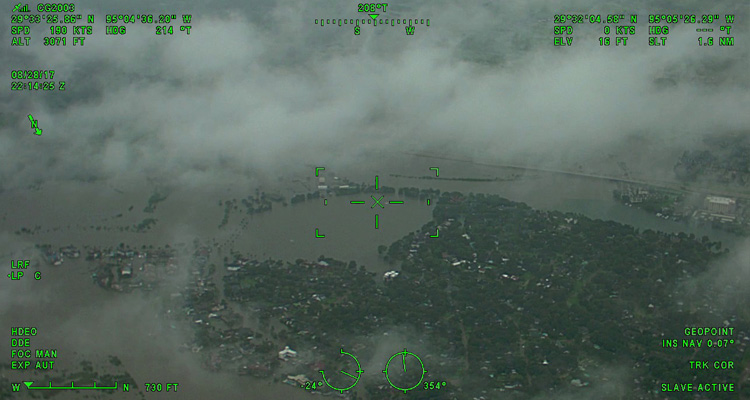 A view of flood damage over Houston as captured by the CGNR 2003, the first aircraft in the Coast Guard fleet outfitted with Minotaur mission system architecture. U.S. Coast Guard graphic.
