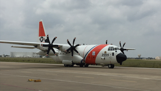 An HC-130J Super Hercules long range surveillance aircraft arrives in Waco, Texas, May 11, 2017, to begin installation of the Minotaur Mission System Suite. The aircraft previously operated out of Air Station Elizabeth City, North Carolina, and is the second HC-130J to undergo a mission system retrofit. U.S. Coast Guard photo by Chief Warrant Officer Ken Norris.