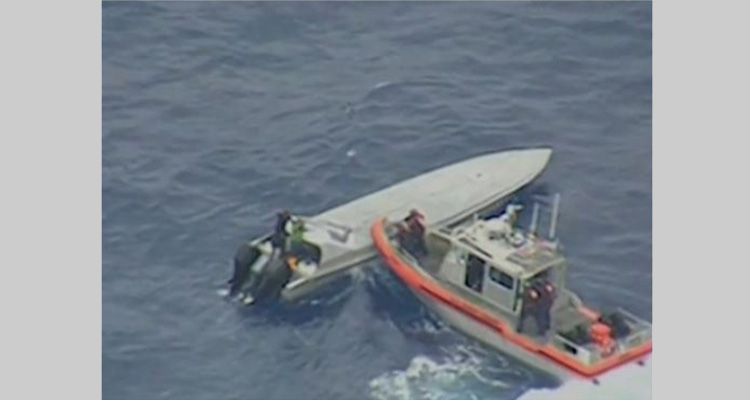 A Coast Guard Cutter Stratton boarding team aboard the cutter’s long range interceptor II boat interdicts a low-profile go-fast vessel in international waters near Central America Dec. 30, 2017, as recorded by the small unmanned aircraft system on board the cutter. The team apprehended four suspected smugglers and seized more than 3,414 pounds of cocaine worth more than $46 million from the suspected smuggling vessel. U.S. Coast Guard photo. Click here for the full video of the interdiction.