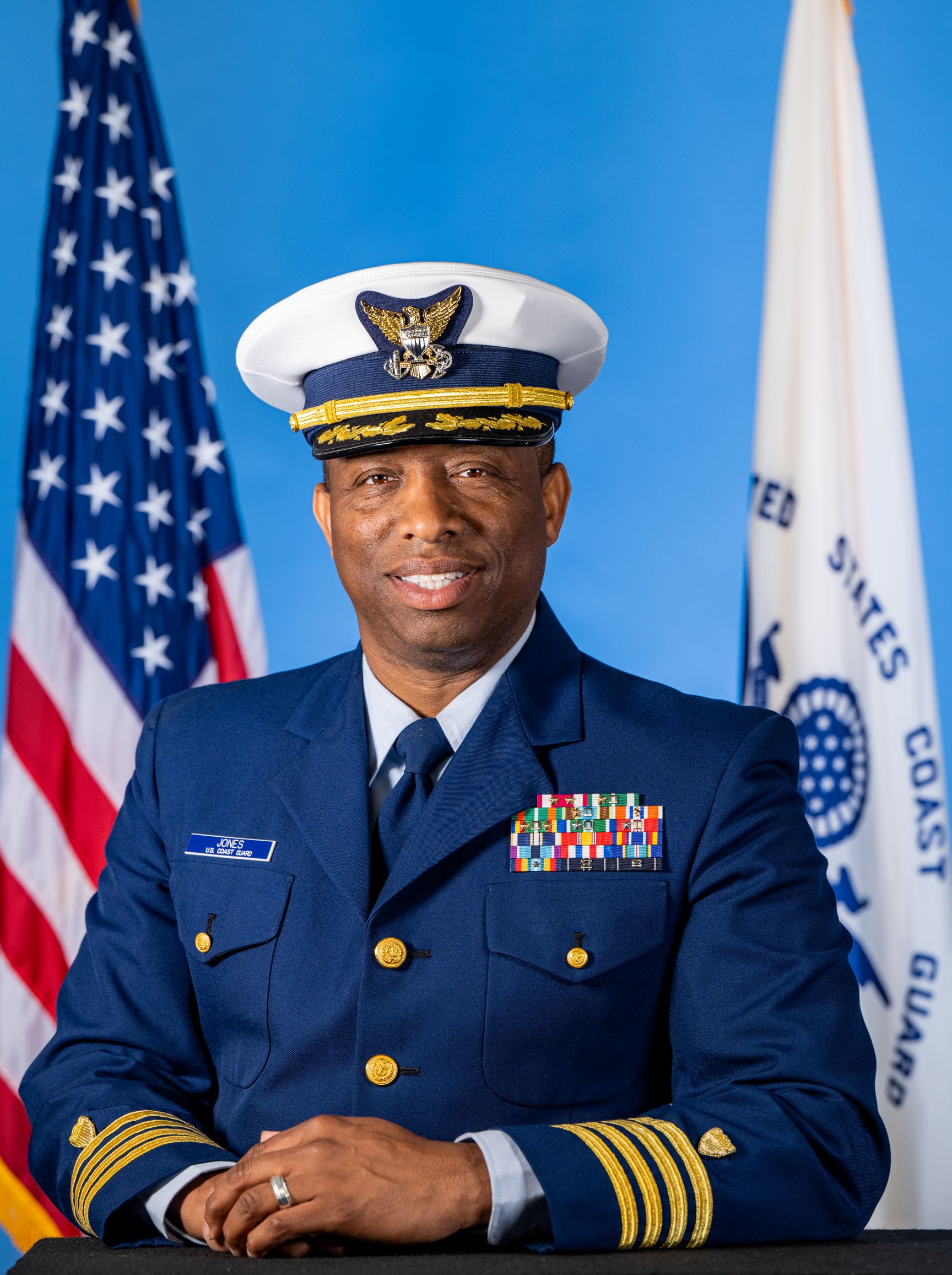 CAPT Jones’s personal military awards include the Meritorious Service Medal (four), Coast Guard Commendation Medal (two), and several other personal and unit awards. He was also honored in 2014 with the Captain D. Jarvis Inspirational leadership award that recognizes a Coast Guard Officer that has made outstanding contributions to the high standards of professional competence and leadership in the Coast Guard; In 2022, he was the Coast Guard's recipient of the BEYA Stars and Stripes award.