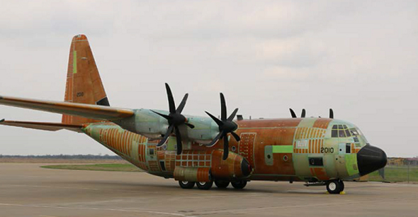 After the Coast Guard accepted delivery of its 10th C-130J, the aircraft was flown to the L3 Technologies Integrated Systems Platform Integration Division in Waco, Texas, for induction into the Minotaur mission system suite installation program Feb. 28, 2017. The aircraft will be painted prior to its delivery as an HC-130J. U.S. Coast Guard photo.